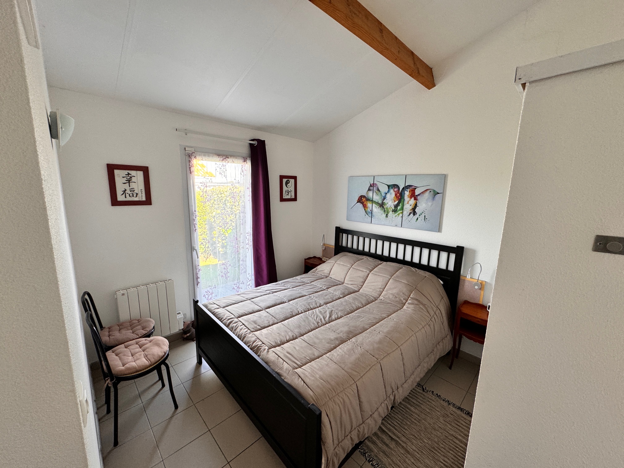 - voilage + rideaux occultants et volets sur toutes les fenêtres